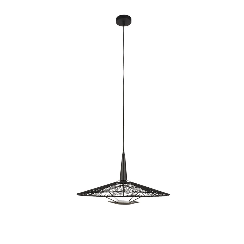 Carpa Pendel M Black fra franske Forestier og tyske Jette Scheib er en elegant lampe, der i en næsten matematisk matrix-mønster tydeliggør sin geometriske form gennem polygoner optegnet i tynde strenge. Lampen er dermed gennemsigtig, og på den måde formår Scheib at skabe luftig belysning der elegant i lokalet lader lyset undslippe sin form.