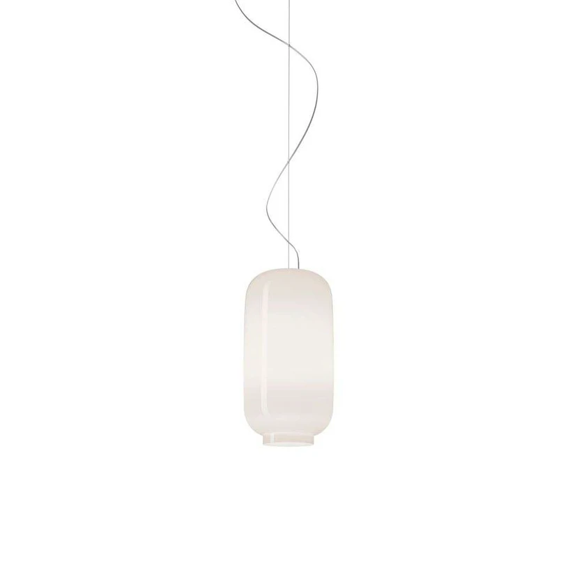 Chouchin 2 Pendel My Light White fængsler og fornøjet øjet med den fabelagtige effekt, der opstår mellem det klare glas og den smukke dybe farve, der får formen til at springe til live og emme af vitalitet. Lampens form er inspireret af de japanske papirlanterner af samme navn, men er her gjort i lækkert mundblæst glas for at sikre den skinende blanke overflade.