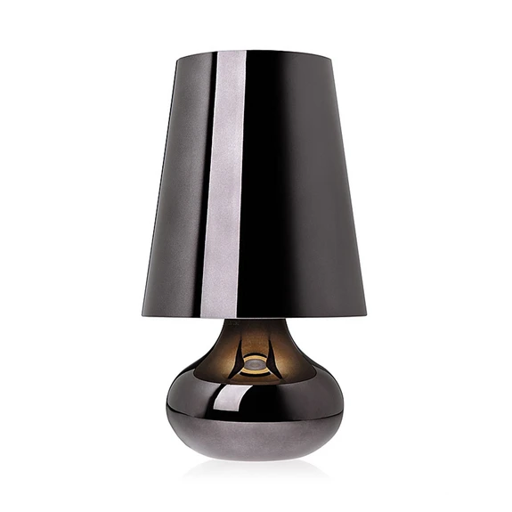 Cindy bordlampen er typisk for halvfjerdserne blot med ny form og farve. Gun metal er en legering lavet af 85% kobber, 5% tin, 5% bly, og 5% zinc og ud over det at man før i tiden brugte det til at støbe kanoner benyttes det idag i mange andre sammenhænge. Den helt specielle farve giver Cindy lampe et elegant skær.