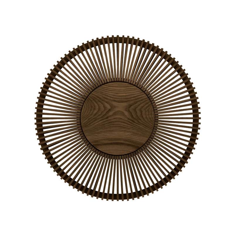 Clava Up Wood Væg-/Loftlampe Large Dark Oak er en stilfuld lampe, fremstillet i laserskåret trælameller. Lampen er yderst dekorativ i sig selv, men får et ekstra niveau af elegance, når den tændes. Lyset kastes ud gennem lamellerne og skaber et spændende spil mellem lys og skygge, der allermest minder om solens stråler.