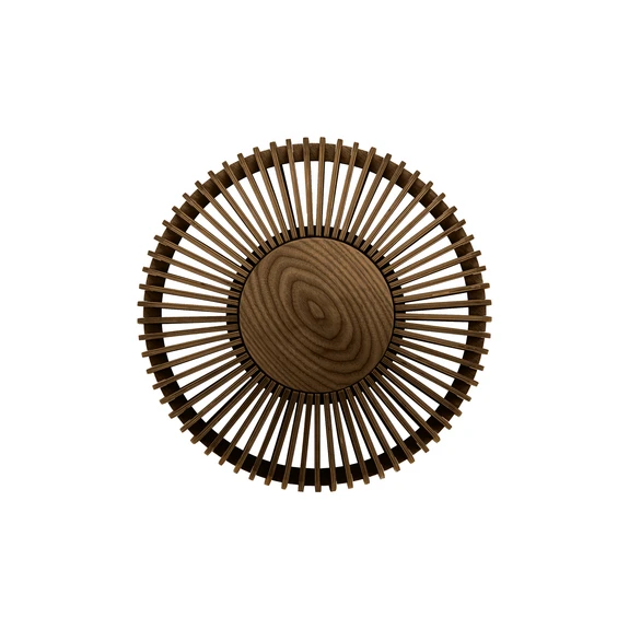 Clava Up Wood Væg-/Loftlampe Medium Dark Oak er en stilfuld lampe, fremstillet i laserskåret trælameller. Lampen er yderst dekorativ i sig selv, men får et ekstra niveau af elegance, når den tændes. Lyset kastes ud gennem lamellerne og skaber et spændende spil mellem lys og skygge, der allermest minder om solens stråler.