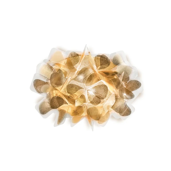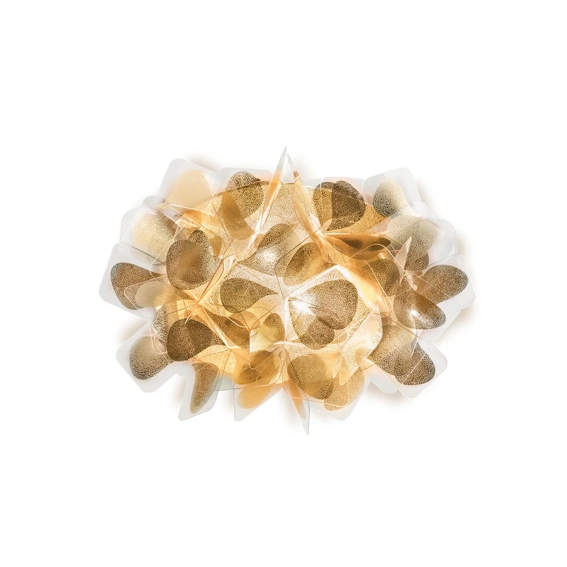 Cliza Væglampe Mama Non Mama Gold er en omfattende lampeserie fra den italienske lysproducent SLAMP, der er kendt for sin eksperimenterende og nytænkende tilgang til belysning. Resultatet er ofte et smukt skue af nøje tilpasset og afstemt belysning med en flot og gennemtænkt effekt, der skaber en fest for øjet. Clizia er ingen undtagelse. Dette skyldes dels det flotte skærmmønster, der giver lampen et let og svævende udtryk, dels at lampen er fremstillet af materialet Opalflex, som giver et diffust lys til rummet og er en sand oplevelse for alle tilstedeværende. Clizia er for dig, der ønsker et raffineret design ud over det sædvanlige.