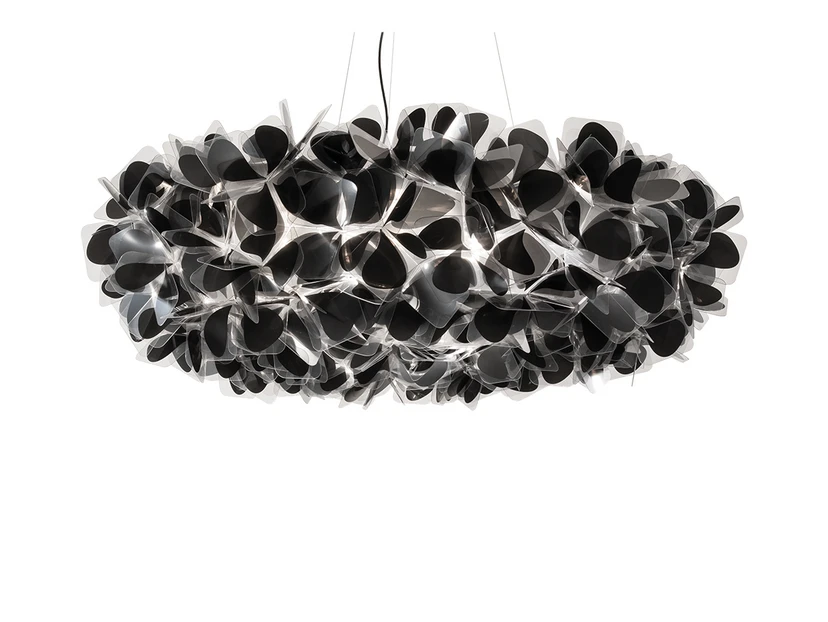 Clizia 130 Pendel Mama Non Mama Black/Black fra SLAMP er en unik pendellampe, der bringer elegance og charme ind i dit hjem. Denne pendel er skabt med en håndfoldet teknik, der anvender et innovativt sammenlåsningssystem, hvilket gør den til en hyldest til glæde, femininitet og ren kærlighed. Den sorte farve tilføjer et moderne touch til ethvert rum, mens det holdbare polykarbonatmateriale med kold folie sikrer langvarig skønhed. Hver petal er designet med en krakeleret tekstur, der skaber et fascinerende spil af lys og skygge, hvilket gør den til et perfekt valg for dem, der ønsker at tilføje en dramatisk effekt til deres indretning. Clizia pendellampen er ideel til både stue og spisestue, hvor den kan fungere som et centralt element, der fanger opmærksomheden.
