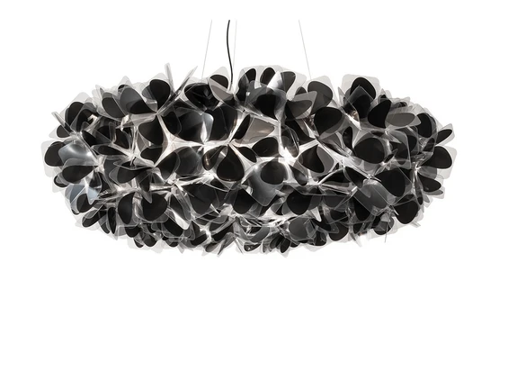 Clizia 130 Pendel Mama Non Mama Black/Transparent fra SLAMP er en unik pendellampe, der bringer elegance og charme ind i dit hjem. Denne pendel er skabt med en håndfoldet teknik, der anvender et innovativt sammenlåsningssystem, hvilket gør den til en hyldest til glæde, femininitet og ren kærlighed. Med sin kombination af sort og transparent polykarbonat, tilføjer Clizia et moderne touch til ethvert rum. Den kolde folie giver en smuk krakeleret tekstur, der ikke kun styrker hver blomst, men også skaber et fascinerende spil af lys og skygge. Denne pendellampe er perfekt til at skabe en varm og indbydende atmosfære i stuen, spisestuen eller soveværelset. SLAMP har med denne pendel formået at kombinere kunstnerisk design med funktionalitet, hvilket gør den til et must-have for enhver designentusiast. .