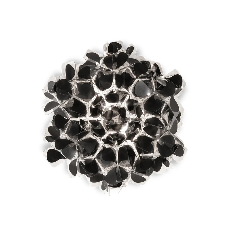 Clizia Loft-/Væglampe Mama Non Mama Mini Black er en omfattende lampeserie fra den italienske lysproducent SLAMP, der er kendt for sin eksperimenterende og nytænkende tilgang til belysning. Resultatet er ofte et smukt skue af nøje tilpasset og afstemt belysning med en flot og gennemtænkt effekt, der skaber en fest for øjet. Clizia er ingen undtagelse. Dette skyldes dels det flotte skærmmønster, der giver lampen et let og svævende udtryk, dels at lampen er fremstillet af materialet Opalflex, som giver et diffust lys til rummet og er en sand oplevelse for alle tilstedeværende. Clizia er for dig, der ønsker et raffineret design ud over det sædvanlige.