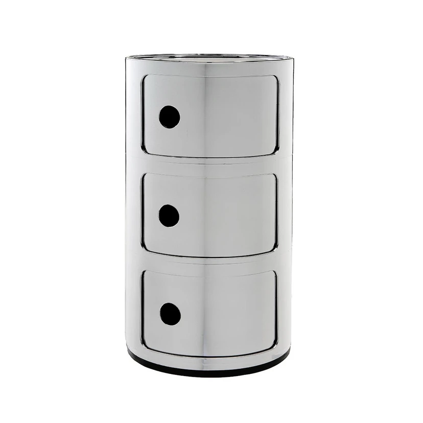 Componibili 3 Sidebord Chrome fra Kartell er det perfekte valg til dig, der søger et alsidigt og stilfuldt sidebord. Dette ikoniske møbel, der først blev introduceret i 1967, er blevet en tidløs klassiker inden for boligindretning. Med en diameter på 32 cm og en højde på 58,5 cm passer det perfekt ind i ethvert rum i hjemmet. Fremstillet i holdbart plast og med en elegant kromfinish, tilføjer det et moderne touch til din indretning. Componibili er designet med modulære elementer, der kan tilpasses dine behov, og det fås i faste sammensætninger af to, tre eller fire elementer. Dette gør det både funktionelt og praktisk, uanset om det anvendes som natbord, i stuen eller på kontoret. Giv dit hjem et strejf af elegance med dette smukke sidebord fra Kartell. .