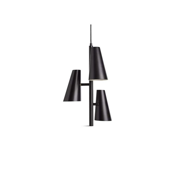 Cono Pendel 3 Black fra Woud er den perfekte kombination af minimalistisk design og funktionalitet. Denne elegante pendel, fremstillet i sort metal, har en silkeblød, mat overflade, der tilføjer et blødt visuelt udtryk til ethvert rum. Med en højde på 50 cm og en diameter på 36 cm passer den perfekt ind i både moderne og klassiske indretninger. De justerbare skærme giver dig mulighed for at rette lyset præcist, hvor du har brug for det, hvilket gør den ideel til både arbejdsområder og hyggelige hjørner i hjemmet. Uanset om du ønsker at skabe en fokuseret belysning over dit skrivebord eller fremhæve et særligt område i stuen, leverer Cono pendlen et funktionelt og stilfuldt lys. Dens alsidighed gør den til et uundværligt element i din boligindretning.