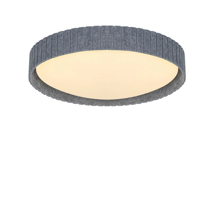 Lampen er fremstillet af plast og stof, hvor skærmen er lavet af plast og omkranset af filt. Dette skaber et blødt og dekorativt udtryk, der tilføjer en hyggelig atmosfære til ethvert rum. Den grå farve gør den alsidig og let at integrere i forskellige indretningsstile.