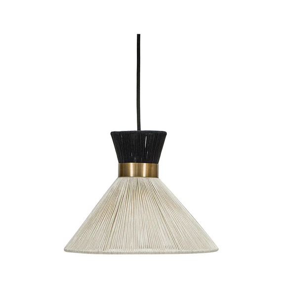 Cord Pendel Sort fra House Doctor er den perfekte tilføjelse til dit hjem, når du ønsker at kombinere elegance med moderne design. Denne pendel, også kendt som en hængelampe, er skabt med en harmonisk blanding af jern og messing, der sikrer både holdbarhed og et stilfuldt udtryk. Lampens ydre er omviklet med off-white og sorte polyestertråde, hvilket giver den et unikt og sofistikeret look, der passer ind i både klassiske og moderne indretninger. Med en højde på 20 cm og en diameter på 25 cm er denne lampe ideel til at skabe en hyggelig atmosfære over spisebordet, i stuen eller som et elegant indslag i entréen. Den sorte farve tilføjer en tidløs charme, der let kan integreres i forskellige farveskemaer. Giv dit hjem et strejf af House Doctors designæstetik med denne smukke pendel.