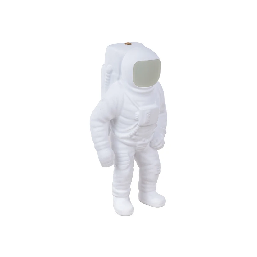 Lampen er skabt i resin, og er udformet som en astronaut. Astronauten står og beskuer din lejlighed, og man kan se, at alle årene på rumakadamiet var godt givet ud – for han har husket at tænde loftlyset i sin hjelm, så han bedre kan se, imens han undersøger den sære planet - altså dit hjem - som han er landet på.
