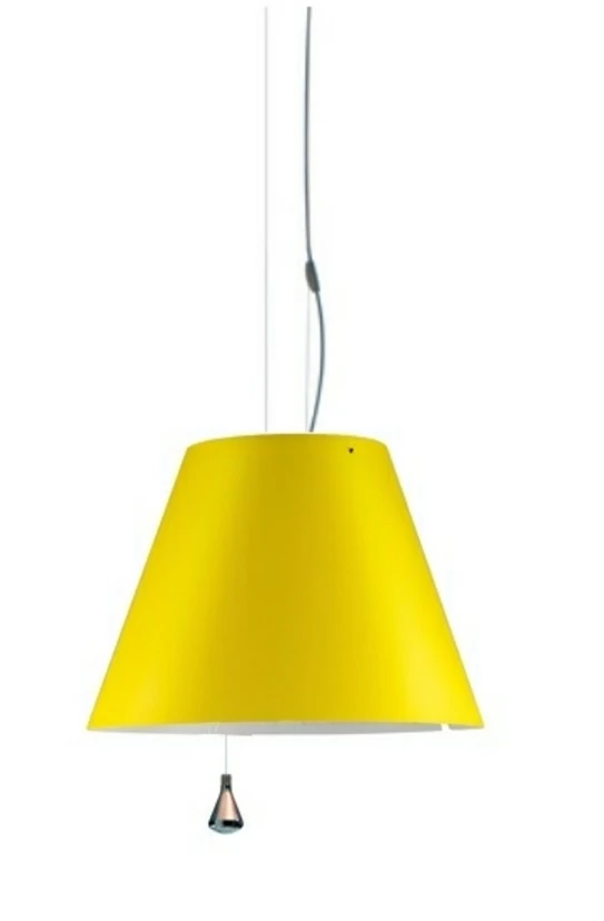 I Costanza Pendel up/down Smart Yellow er det de samme materialer og den samme teknologi der benyttes, med de umiskendelige tegn på avant-garde design. Costanza balancerer mellem synlighed og delikatesse, og den pryder dens omgivelser med sin enkle, men barske udførsel.