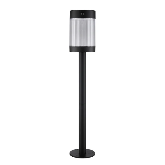 Lampen er fremstillet af holdbart aluminium og plast i en elegant sort og klar farvekombination. Den måler 80 cm i højden og har en diameter på 14 cm, hvilket gør den til en iøjnefaldende, men diskret tilføjelse til din udendørsbelysning. Coupar Solar Havelampe oplades ved hjælp af sollys i løbet af dagen og aktiveres automatisk ved bevægelse om natten. Du kan vælge mellem to sensorindstillinger: enten tænd/sluk eller fra natlys til fuldt lys, når du går forbi.