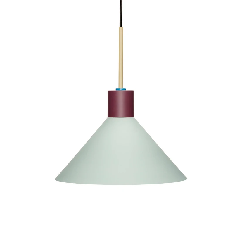 Pendel Ø35 Beige/Blue/Mint/Bordeaux er et simpelt og stilrent design, der har et strejf af et vintagelook, som er yderst populært og tidløst, og kan derfor passe ind i enhver indretningsstil. Her kan du placere den de fleste steder, enten alene eller i klynger af flere, eksempelvis over spisebordet, i køkkenet, i stuen eller ved siden af sengen, hvor den hvide inderside på lampeskærmen sørger for, at lyset bliver spredt på en flot, behagelig og jævn måde i lokalet. Den kegleformede pendel er fremstillet i solidt metal eller træ, som du kan få i flere forskellige flotte farver, der kommer med enten en unik farvet top eller ledning. Du kan derfor med fordel kombinere de forskellige lamper for et mere personligt, farverigt og unikt præg på din indretning. Pryd dit hjem med denne funktionelle og dekorative belysningsløsning.