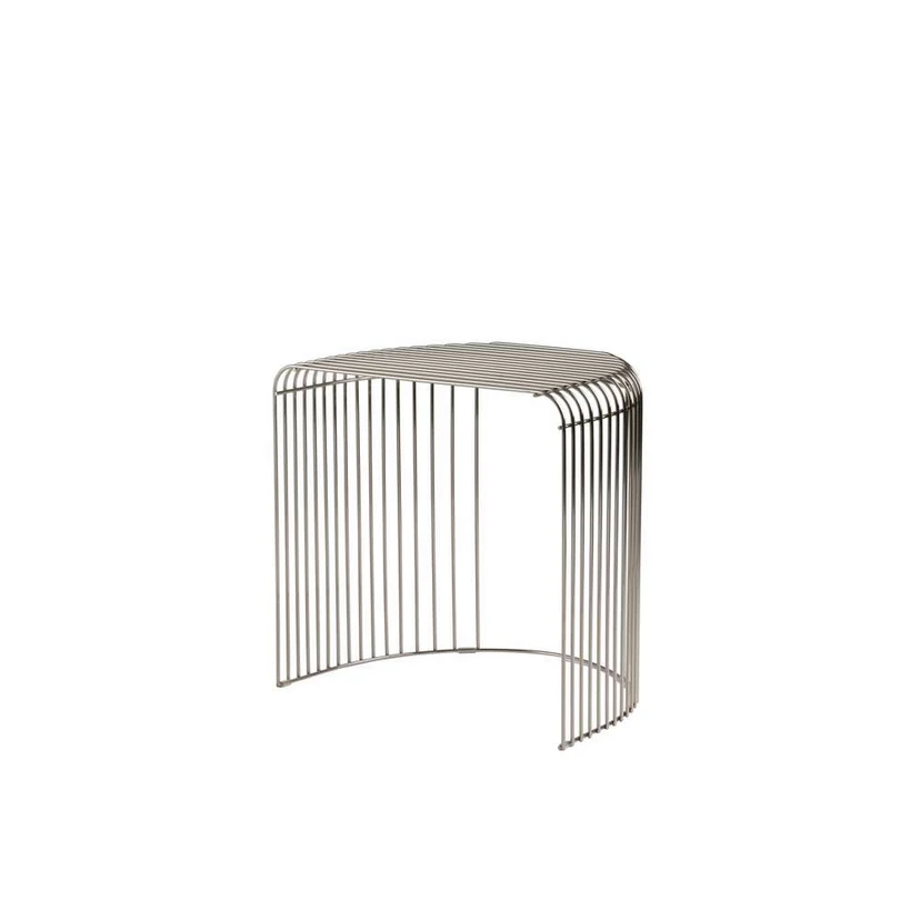 Curva Table Silver er det perfekte sofa- eller konsolbord til dig, der efterspørger en ekstra opbevaringsløsning i et sprødt, moderne design. Bordet er fremstillet af stålstænger, der former sig bløde buer, som tilføjer et dynamisk udtryk til det overordnede design. Stålet har fået en smuk finish, som gør bordet nemt at indpasse uafhængigt af det eksisterende indretningskoncept. Den halvskiveformede bordplade giver rigelig med plads til opbevaring af snacks og andre småting.