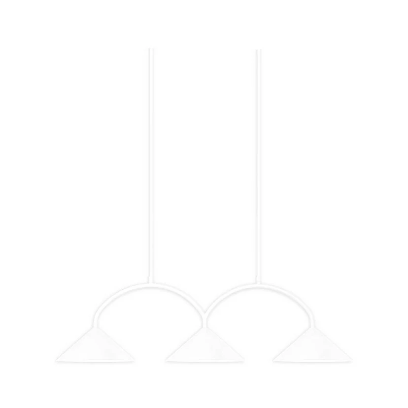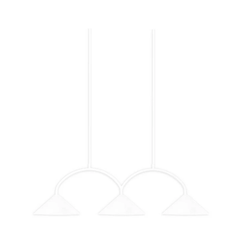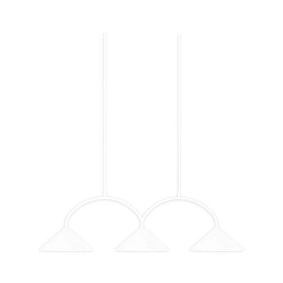 Lampen består af tre metalskærme og leveres med to 200 cm lange hvide tekstilkabler samt en matchende loftkop i metal. Bemærk, at lampestik til lofttilslutning sælges separat. Denne pendel er ikke kun en lyskilde, men også et kunstværk, der vil berige din indretning med sin tidløse æstetik. Gør dit hjem lysere og mere indbydende med Curve 3 Pendel White.