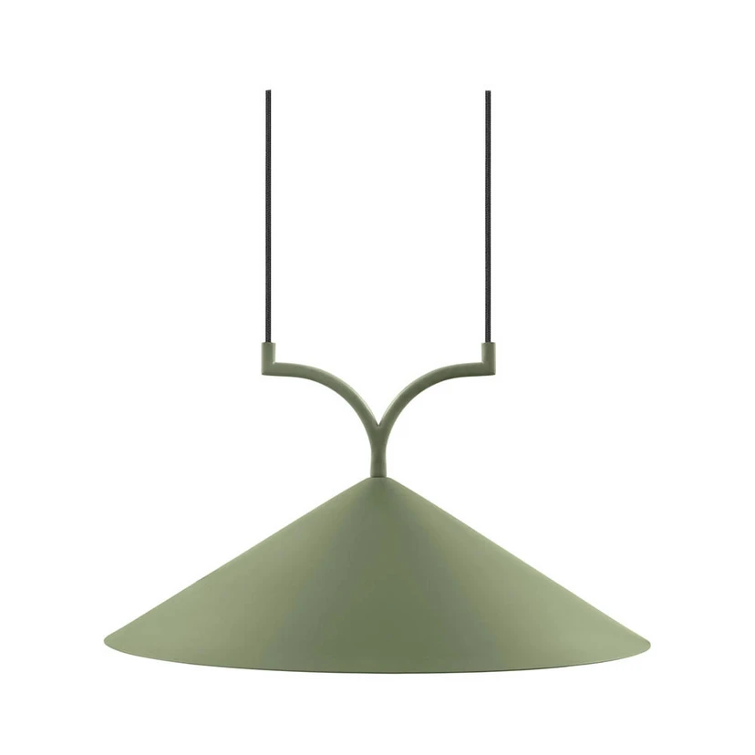 Curve 50 Pendel Green fra Globen Lighting er en elegant tilføjelse til dit hjem. Denne pendel, fremstillet af matlakeret metal i en smuk grøn farve, kombinerer bløde, runde buer med en skarp, trekantet skærm. Den unikke form gør den ideel til at hænge over spisebordet eller køkkenøen, hvor den vil tilføje et moderne touch til din indretning.
