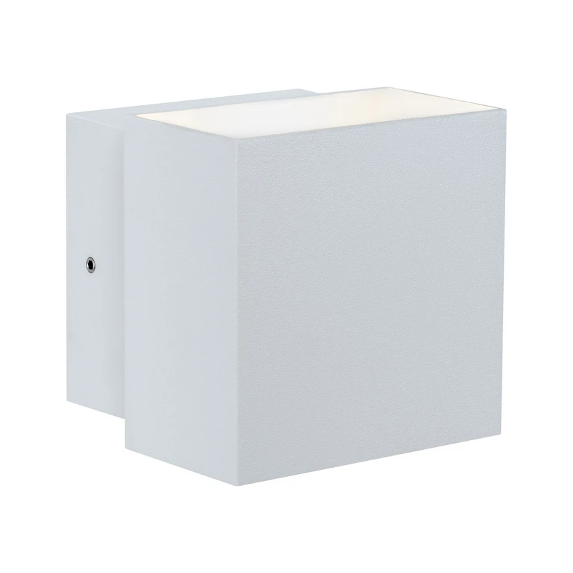 Cybo Udendørs Væglampe 10x10 White imponerer med sine rene, snorlige linjer, rette vinkler og detaljereducerede design. Armaturet har en helt enkel kubisk udformning og et neutralt farveskema, der nemt finder plads i mange forskellige områder men er særligt oplagt til moderne og minimalistiske miljøer. Med en kapslingsklasse IP65 tåler lampen både vind og vejr.