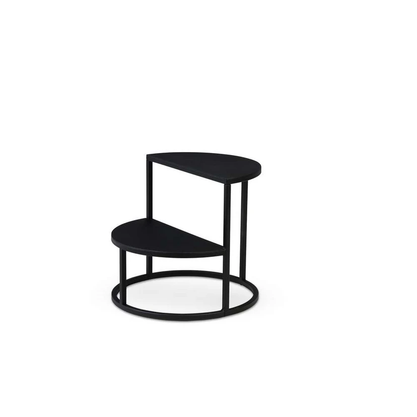 Dais Stepstool er et smukt, designorienteret møbel og samtidig en praktisk tilføjelse til hjemmet med mange forskellige muligheder for anvendelse. Skamlen har et cirkulært formskema med en fod, der danner en ubrudt cirkel, og to trin formet som halvcirkler, så den flotte grundform fremhæves igen og igen. Skamlen er fremstillet af robust stål, der sikrer holdbarhed og stabilitet, med en sort, mat overfladelakering, der tilføjer et stilrent udtryk til helheden. Det neutrale, monokrome farveskema kombineret med den geometriske udformning gør Dais Stepstool oplagt til moderne og kunstorienterede indretninger.