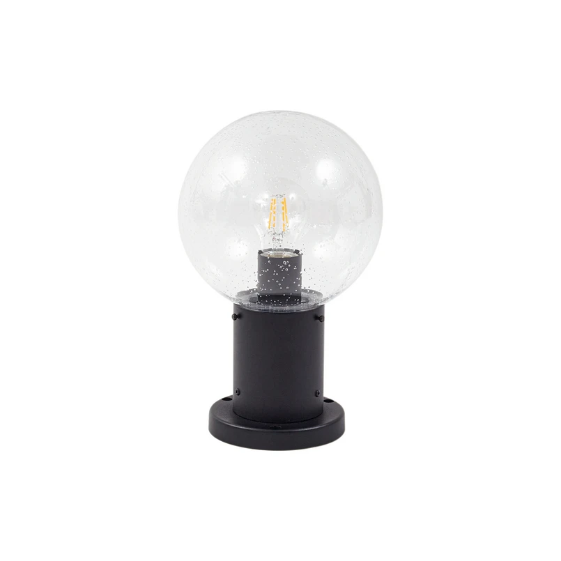 Sokkellampen Dangan kombinerer moderne design med materialer af høj kvalitet som glas og aluminium. Det klare, transparente udseende i kombination med sorte accenter giver lampen en tidløs elegance, der passer harmonisk ind i ethvert miljø. Takket være kapslingsgrad IP44 er den specielt designet til udendørs brug, f.eks. på terrasser, og tilbyder pålidelig beskyttelse mod stænkvand og vejrpåvirkninger.