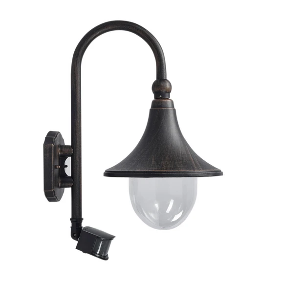 Daphne Udendørs Væglampe w/sensor Rust har en utrolig smuk klassisk æstetik, der grænser til det antikke. Især boliger med en historisk udstråling vil fungere godt med et par Daphne lamper på hver side af døren og langs væggene. Den nostalgiske udstråling fuldendes af den lækre farve og den smukke bue.