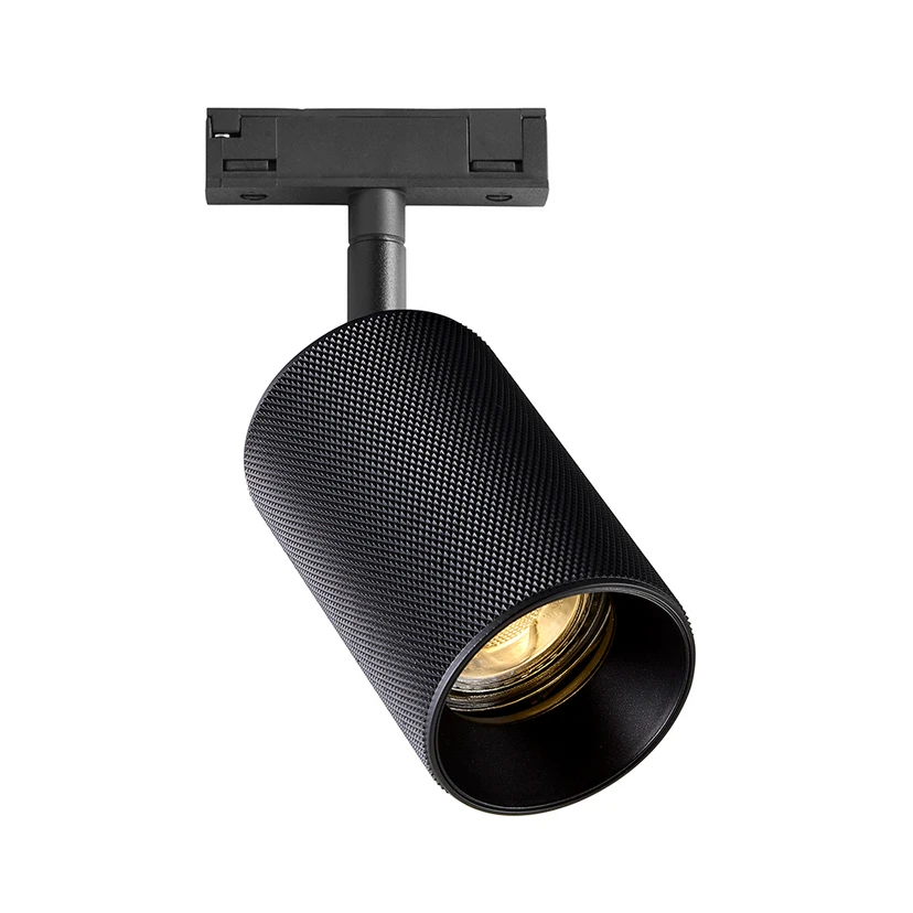 Designline Tube Pro Spot GU10 Grib Sort fra Antidark er det perfekte valg for dig, der søger et eksklusivt og stilrent spotlys til dit hjem. Denne spot er en del af den populære Designline-serie, kendt for sit minimalistiske design og store fleksibilitet. Fremstillet i sort aluminium, tilbyder denne spot et markant og råt look med sin nubret overflade. Med en højde på 15,7 cm og en bredde på 9,8 cm passer den perfekt ind i ethvert rum. Designline Tube Pro Spot er let at montere på Designline-skinnen og kan drejes og vinkles efter behov, hvilket gør det nemt at tilpasse belysningen til rummets funktion. Den medfølgende honeycomb filter reducerer blænding, mens den ekstra guldfrontring i messing giver mulighed for at ændre udseendet. Lyskilden er udskiftelig, så du kan vælge den GU10 pære, der passer bedst til dine behov.