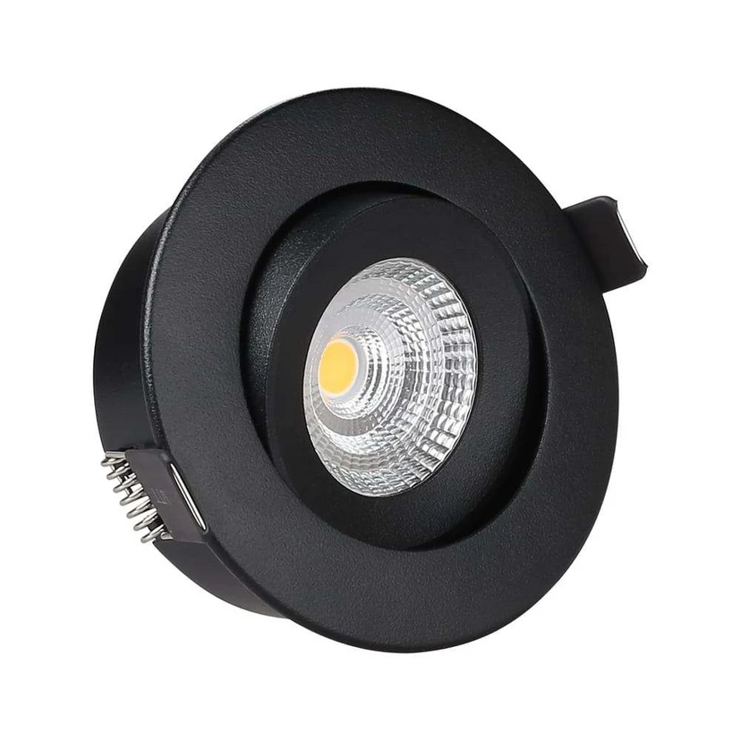 Downlight Indbygningsspot 7W 3000K Tilt Sort er et simpelt, klassisk indbygningsspot fra ANTIDARK, som kan integreres i alle indretningsstile samt i alle rum. Downlights beskedne størrelse og design gør, at den ubesværet kan blende ind med resten af dine omgivelser, uden at den er optisk forstyrrende, uden at gå på kompromis med det gode, varme og behagelige lys, der spreder rundt til hele rummet. Downlight designet kommer også i en Downlight tilt version, som har en ekstra smart funktion, idet den kan vippes i alle retninger, så du selv kan justere lyset efter behov og humør. Du kan samtidig også få Downlight i forskellige størrelser og farver, med enten 2700 eller 3000 kelvin, så du har gode muligheder for at finde netop det indbygningsspot, der passer til din indretning og dit belysningsbehov. Disse indbygningsspot har også en god farvegengivelse på RA90, samt en tæthedsgrad på IP44, hvilket betyder, at den sagtens kan tåle fugtige områder, såsom badeværelset eller kælderen. Downlight er også et komplet indbygningsspot inkl. Driver, så du skal bare sætte 230 volt til din Driver, og så får du lys.