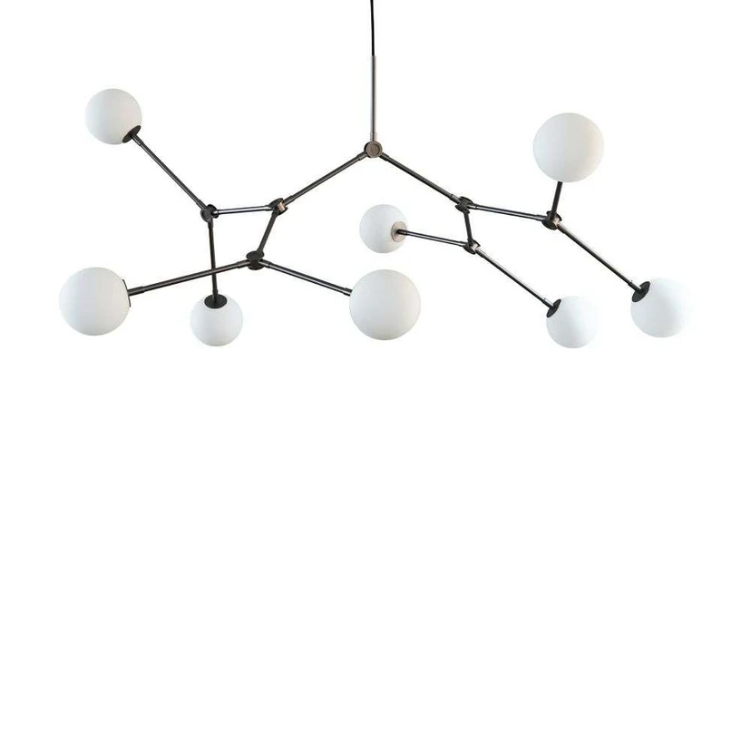 Drop lysekronen er tilgængelig i forskellige materialer, herunder messing, oxidized messing og stål, så du kan vælge den variant, der passer bedst til din indretningsstil. Lysekronen er udstyret med opaliserede glas-pærer, som giver en blød og behagelig belysning, der er perfekt til at skabe en hyggelig atmosfære i ethvert rum.