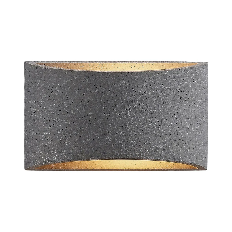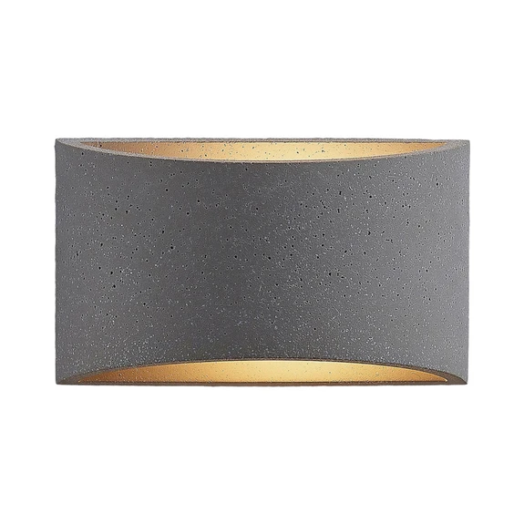 Edvin Væglampe Grey præsenterer sig som en moderne og stilfuld lampe med sit enkle, detaljereducerede design, der fremhæver den smukke grundform. Lampen er fremstillet af beton, hvilket giver udtrykket en vis tyngde, og har en halvrund udformning med en lysudgang i hver ende. Åbningerne skråner en smule ud i rummet, så de kan afgive ekstra meget lys til omgivelserne.