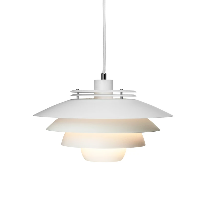 Ejka Pendel Matt White er en klassiske lag-på-lag pendel, med flere lampeskærme i forskellige størrelser. Lampens tidløse look passer ind i alle hjem, hvor den især er ideel over spisebordet. De flotte metal-lampeskærme reflekterer lyset, så du får det bedste ud af din belysning. Lampens opbygning sikrer samtidig, at lyset ikke blænder, når den hænger over spisebordet.