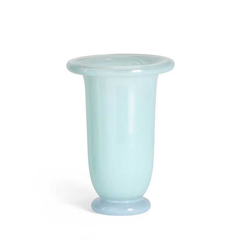 Empire Vase Medium Ice Blå/Lys Blå fra HAY er den perfekte tilføjelse til dit hjem, hvis du ønsker at tilføje et strejf af elegance og farve. Denne smukke blomstervase er fremstillet af holdbart soda glas, der sikrer både kvalitet og et stilfuldt udseende. Med sin unikke kombination af ice blå og lys blå farver, bringer vasen en frisk og moderne æstetik til ethvert rum. Med målene Ø14,5 x H21 cm er den ideel til at fremhæve dine yndlingsblomster eller som et dekorativt element i sig selv.