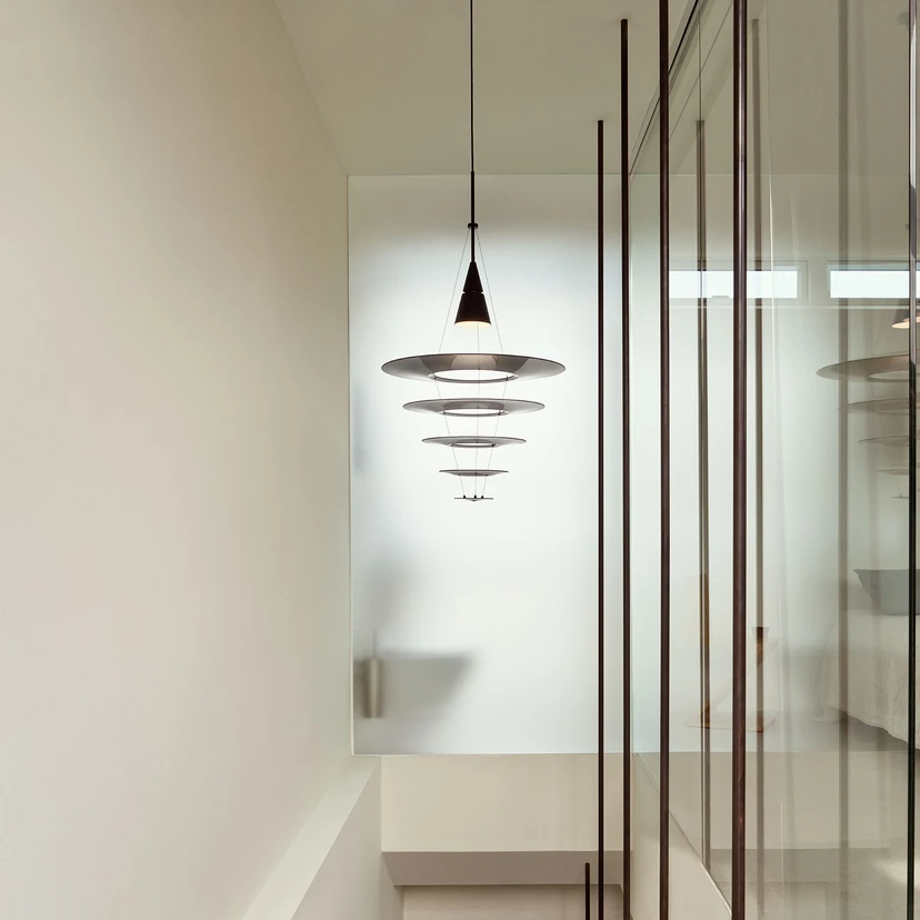 Pendlen Enigma 425 blev i 2003 skabt af den japanske designer Shoichi Uchiyama. Uchiyamas design med svævende skærme i ultratynde wirer giver et transparent og let udtryk som passer godt ind i Louis Poulsens produktfilosofi. Det er en nyfortolkning af det traditionsrige flerskærmssystem.