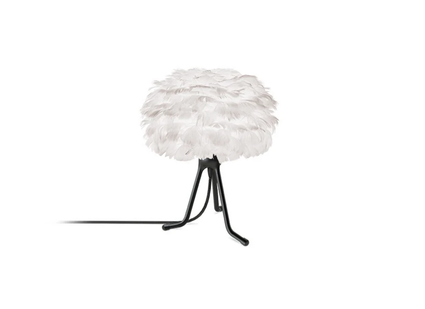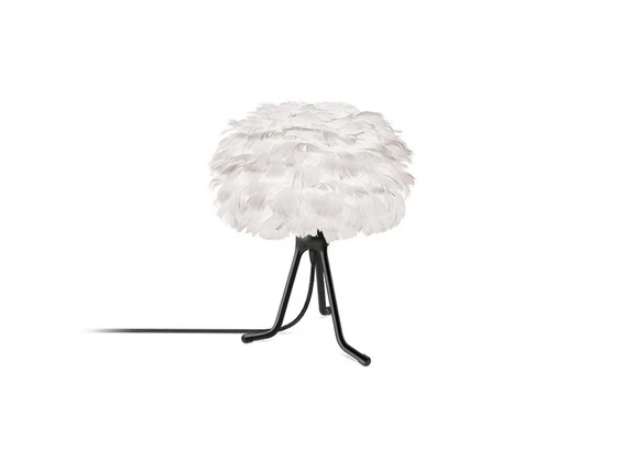 Eos Micro Bordlampe m/Mini Fod Hvid/Sort fra Umage er en helt unik lampe fremstillet i gåsefjer. Disse fjer sørger for at lyset strømmer blødt og lækkert fra lampen og selv når den ikke er tændt er den et kunstværk at se på.