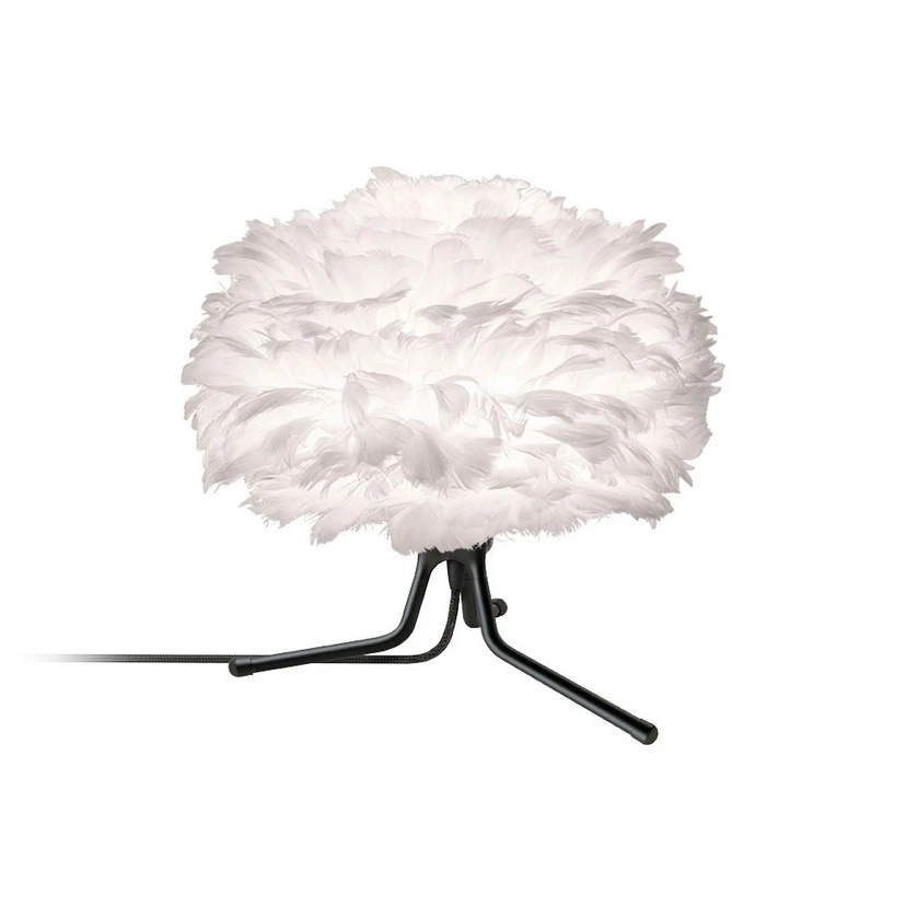 Eos Mini Bordlampe m/Mini Fod Hvid/Sort fra Umage er en helt unik lampe fremstillet i gåsefjer. Disse fjer sørger for at lyset strømmer blødt og lækkert fra lampen og selv når den ikke er tændt er den et kunstværk at se på.