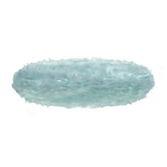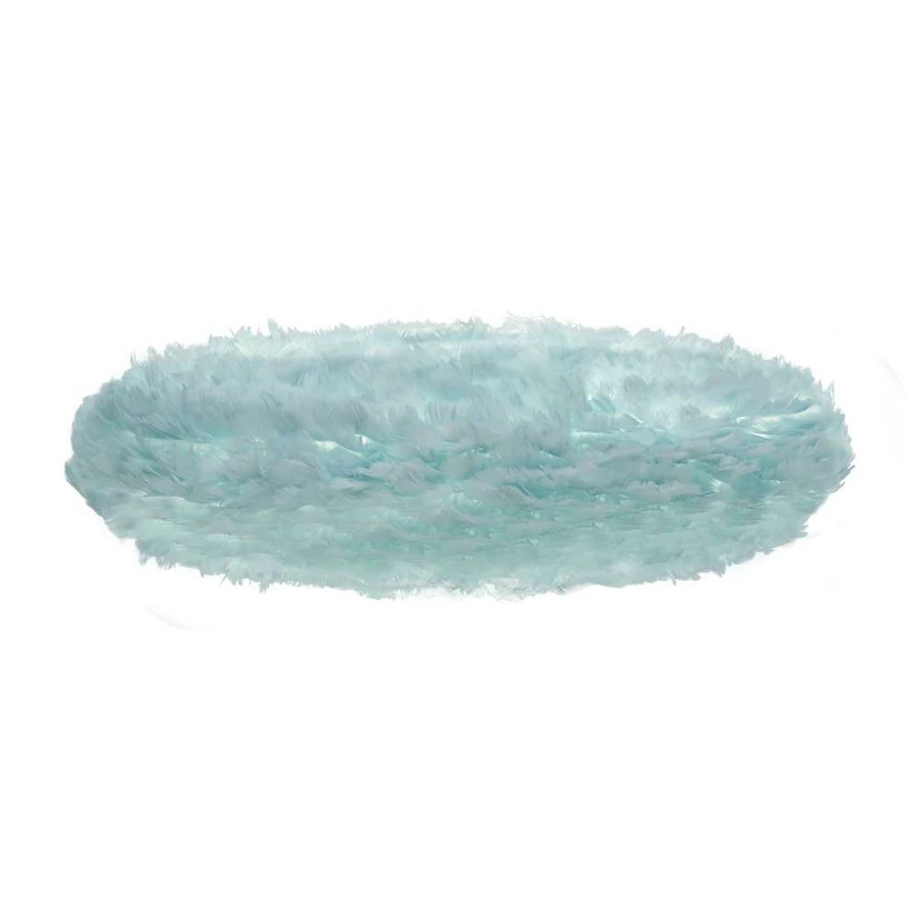 Denne smukke og unikke Eos-skærm er fremstillet i gåsefjer. Disse fjer sørger for at lyset strømmer blødt og lækkert fra lampen, og selv når den ikke er tændt, er den et kunstværk at se på.