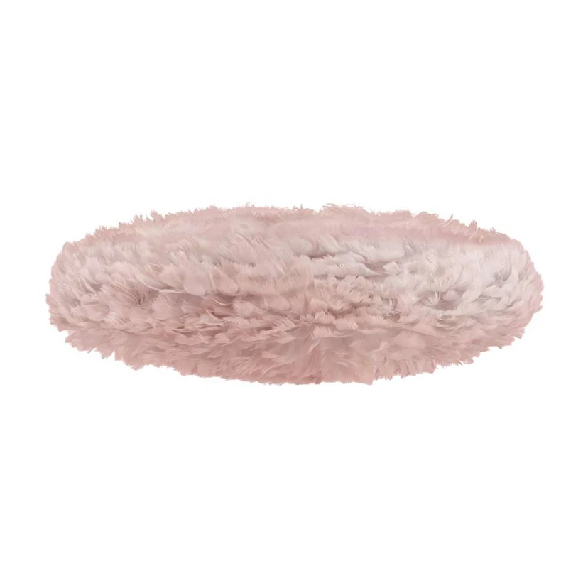 Denne smukke og unikke Eos-skærm er fremstillet i gåsefjer. Disse fjer sørger for at lyset strømmer blødt og lækkert fra lampen, og selv når den ikke er tændt, er den et kunstværk at se på.