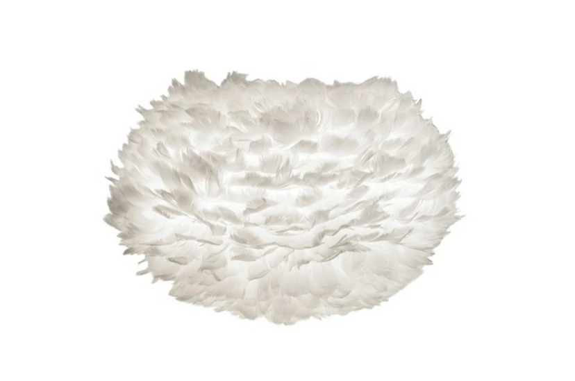 Denne smukke og unikke Eos-skærm er fremstillet i gåsefjer. Disse fjer sørger for at lyset strømmer blødt og lækkert fra lampen, og selv når den ikke er tændt, er den et kunstværk at se på.