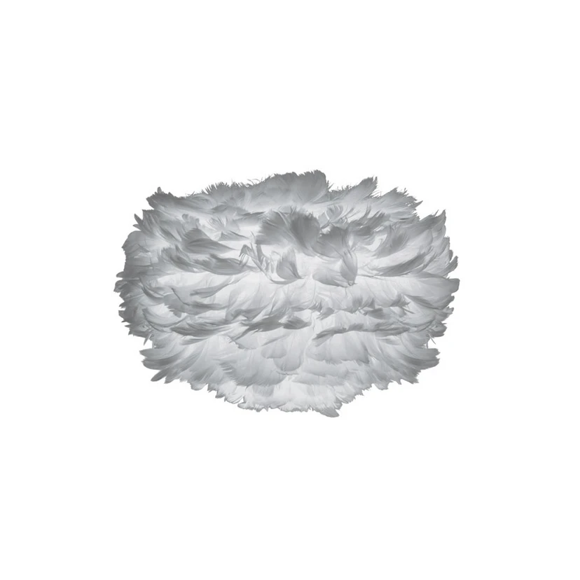 Denne smukke og unikke Eos-skærm er fremstillet i gåsefjer. Disse fjer sørger for at lyset strømmer blødt og lækkert fra lampen, og selv når den ikke er tændt, er den et kunstværk at se på.