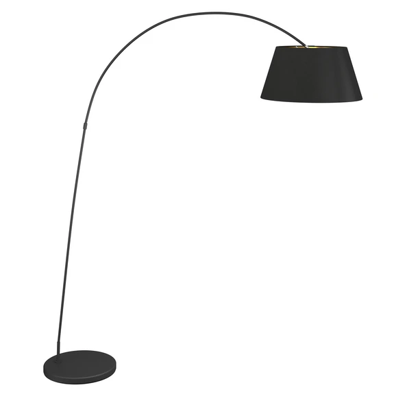 Esti Gulvlampe Black/Gold bøjer sig yndefuldt indover stuen med sit smukke gyldne lampehoved balancerende for enden af den krumme hals. Udstråling moderne og elegant, og lampen gør et stærkt udtryk uden at fylde meget fysisk i rummet. De enkle linjer og underspillede farver gør lampen nem at finde en smuk plads til i de fleste hjem, særligt hvis de i forvejen er moderne indrettede.