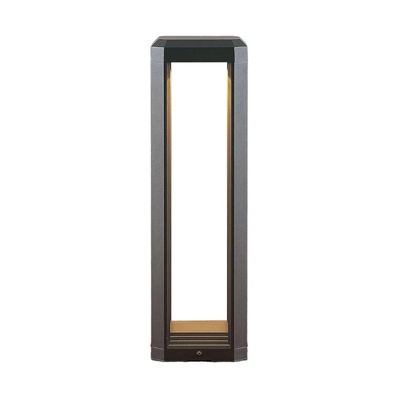 Fery Udendørs Havelampe Anthracite H50 holder på formerne med sine rene, parallelle linjer, der får lampen til at minde om en søjlekonstruktion. Den lækre, matte farve og det selvsikre formsprog emmer af enkel elegance og gør lampen velegnet til alle typer hjem og bygninger.