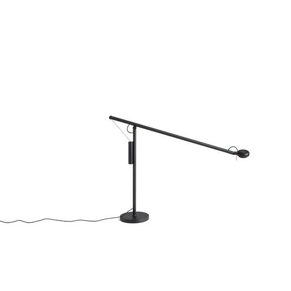 Fifty-Fifty Bordlampe Soft black er skabt på idéen om at designe en multifunktionel lampe med et enkelt design. Takket være et modvægtsystem, kan armen let vippes og roteres, så man kan skabe den rette placering af lyset efter ønske. Designeren Sam Weller, har tydeligt trukket på hans erfaringer som ingeniør og hans arbejde med fysik, da han har designet lampen.