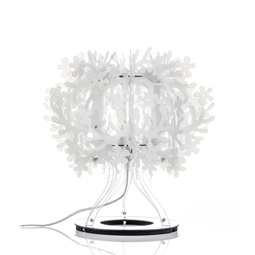 Fiorellina Bordlampe Hvid fra SLAMP er en fortryllende tilføjelse til dit hjem, der kombinerer elegance og funktionalitet. Denne bordlampe, skabt af den talentfulde designer Nigel Coates, er en hyldest til naturens skønhed med sine realistiske og indbydende detaljer. Lampens design er inspireret af floraens verden og bringer en følelse af friskhed og liv ind i ethvert rum. Fremstillet af det innovative materiale Opalflex®, sikrer Fiorellina en holdbar og let konstruktion, der samtidig skaber en blød og behagelig belysning. De reflekterende, lysende kronblade kaster en fascinerende sekvens af lysfragmenter og skygger på væggene, hvilket skaber en magisk atmosfære. Denne hvide bordlampe er perfekt til at tilføje et strejf af elegance til stuen, soveværelset eller kontoret. Gør dit hjem mere indbydende med Fiorellina Bordlampe Hvid, og oplev, hvordan den kan transformere dit interiør.