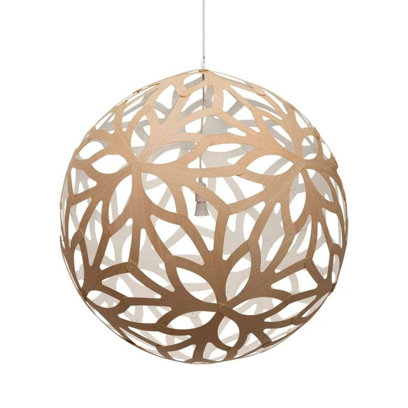 Floral Pendel Ø100 Hvid 1 Side blev designet 3 år efter designklassikeren af David Trubridge. Den blev designet, som en blødere og mere dekorativt alternativ til Coral. På samme måde som hans øvrige lamper, er inspirationen hentet fra naturen – denne gang fra blomsterne. Designerens kærlighed til naturen ses tydeligt i hans design, hvor både inspiration og materialet kommer fra.