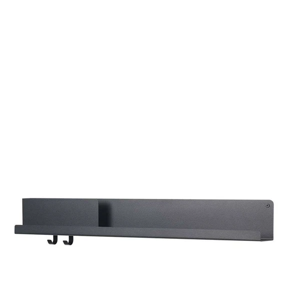 Folded Shelves 96x13 cm Black er inspireret af foldet papir, men her lavet i metal. Hylderne kommer i flere størrelser og farver, til dem alle medfølger 2 kroge.