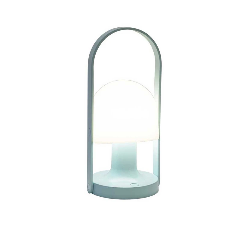 FollowMe Bordlampe Light Blue er den moderne trådløse batteribordlampe med håndtag i matchende farve. Designeren fik idéen til lampen fra den petroleumslampe, hun brugte morgen og aften, når hun skulle udenfor på hendes forældres gård. Hun ønskede at forene den praktiske lampe med moderne funktionalitet, hvilket resulterede i den bærbare Follow Me Lampe.