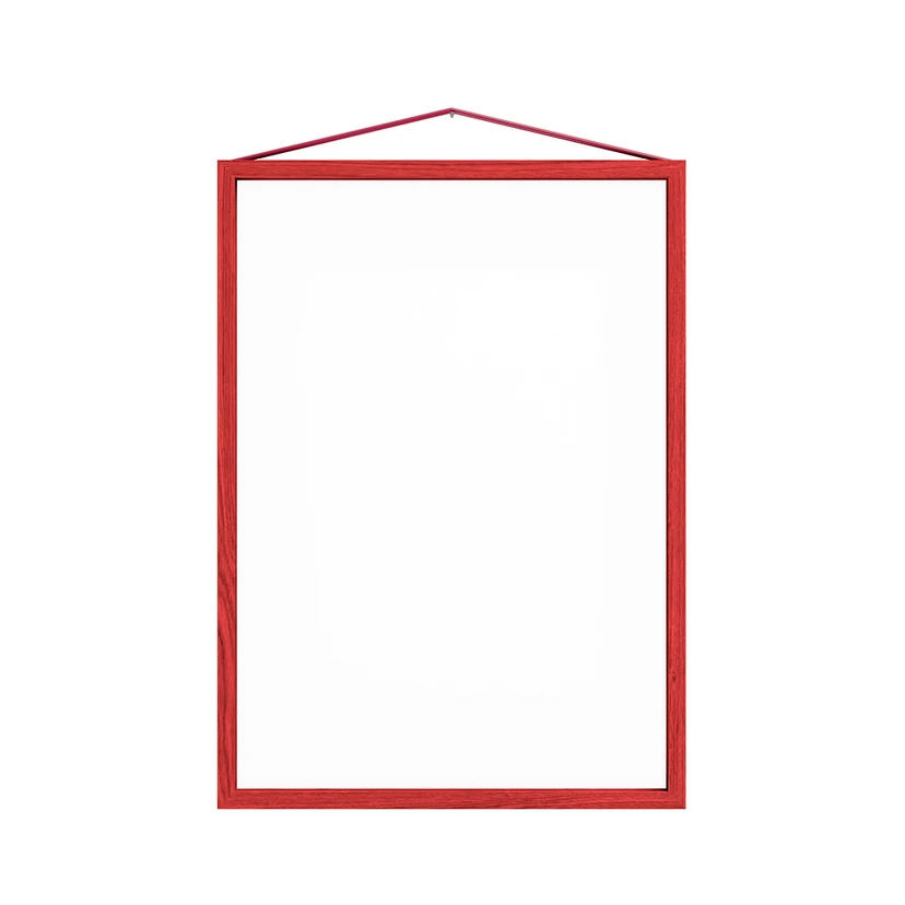 Frame Ramme A3 Rød Stained fra Moebe er den perfekte billedramme til at fremhæve dine kunstværker eller fotografier. Denne ramme kombinerer enkelhed med funktionalitet ved hjælp af en smart konstruktion, hvor en gummibånd både holder rammen sammen og fungerer som ophæng. Du kan vælge at hænge rammen både vandret og lodret, hvilket giver dig fleksibilitet i din indretning. Rammen består af fire trælister, to stykker akrylglas og et gummibånd, hvilket gør det muligt at se dine billeder fra begge sider.