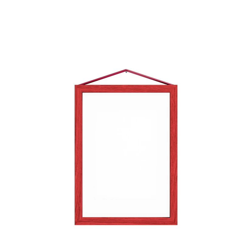 Frame Ramme A5 Rød Stained fra Moebe er den perfekte billedramme til at fremhæve dine yndlingsbilleder eller kunstværker. Denne ramme kombinerer enkelhed med funktionalitet og er fremstillet af ubehandlet eg, ubehandlet ask og farvet birk, alle certificeret med PEFC eller FSC for bæredygtighed. Den røde farve tilføjer et moderne touch til ethvert rum. Rammen består af fire trælister, to stykker akrylglas og en smart gummibåndskonstruktion, der både holder rammen sammen og fungerer som ophæng. Du kan vælge at hænge rammen både horisontalt og vertikalt, hvilket giver dig fleksibilitet i din indretning. Den kan endda ses fra begge sider, hvilket gør den ideel til placeringer, hvor begge sider er synlige. Med otte forskellige finishes og seks størrelser at vælge imellem, kan du finde den perfekte ramme til dit hjem.