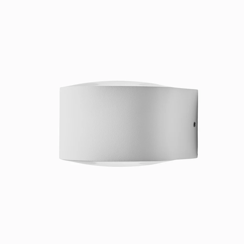 Frey Væglampe White er moderne belysning med et minimalistisk udtryk. Den cylinderformede skærm i trykstøbt aluminium har to indbyggede LED-lyskilder, placeret bag to krystalglaslinser. Den kaster derfor 2 stk. 100 graders lyskegler mod væggen - både opad og nedad, for et smukt lysspil på væggen.