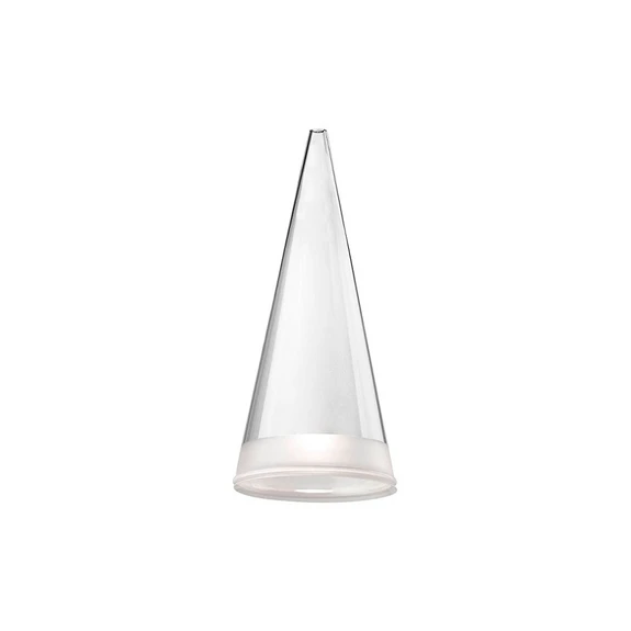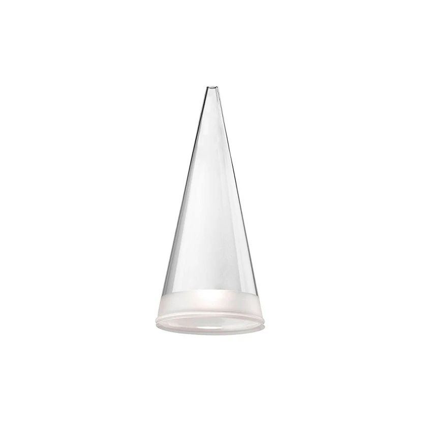 Skærm til Fucsia pendel serien. Pendlerne er tilgængelige i forskellige konfigurationer. Fucsia pendlerne er en enkelt enhed, men kan også fås som en gruppe af 3, 8 og 12 pendler. Hver mundblæst glas "kegle" har en 1,5" sandblæste kant; kombineret med pære. Fucsia serien er en klassikere.
