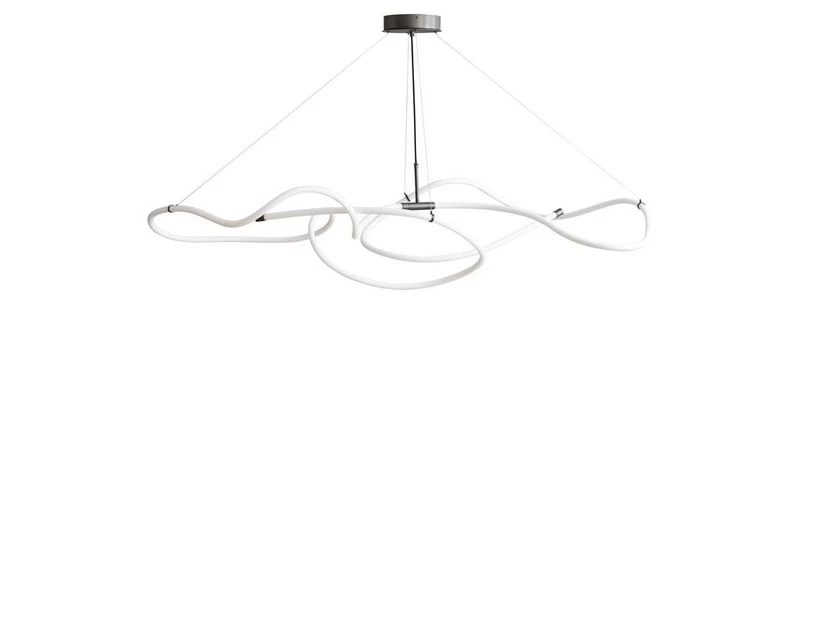Lysrørets smukke bugtninger og sving lægger op til, at man placerer lysekronen midt i rummet eller et sted, hvor det smukke design kan beundres fra alle sider.