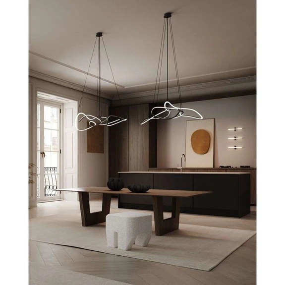 Denne serie fremhæver det lysende hvide akrylrør, der omslutter en holdbar LED-lyskilde med en imponerende levetid på 25.000 timer og en varm farvetemperatur på 2400 Kelvin. I stedet for det skarpe lys, som ofte kendetegner neon, udsender disse lamper en blød og indbydende glød, der skaber en hyggelig og behagelig stemning. Det håndlavede design sikrer en unik lysfordeling langs de kurvede rør, hvilket resulterer i, at lyset skinner stærkere i visse dele af røret. Ophængt i fire justerbare stålwirer kan lysekronen indstilles til den perfekte højde i ethvert rum. Designet af Kristian Sofus Hansen & Tommy Hyldahl.